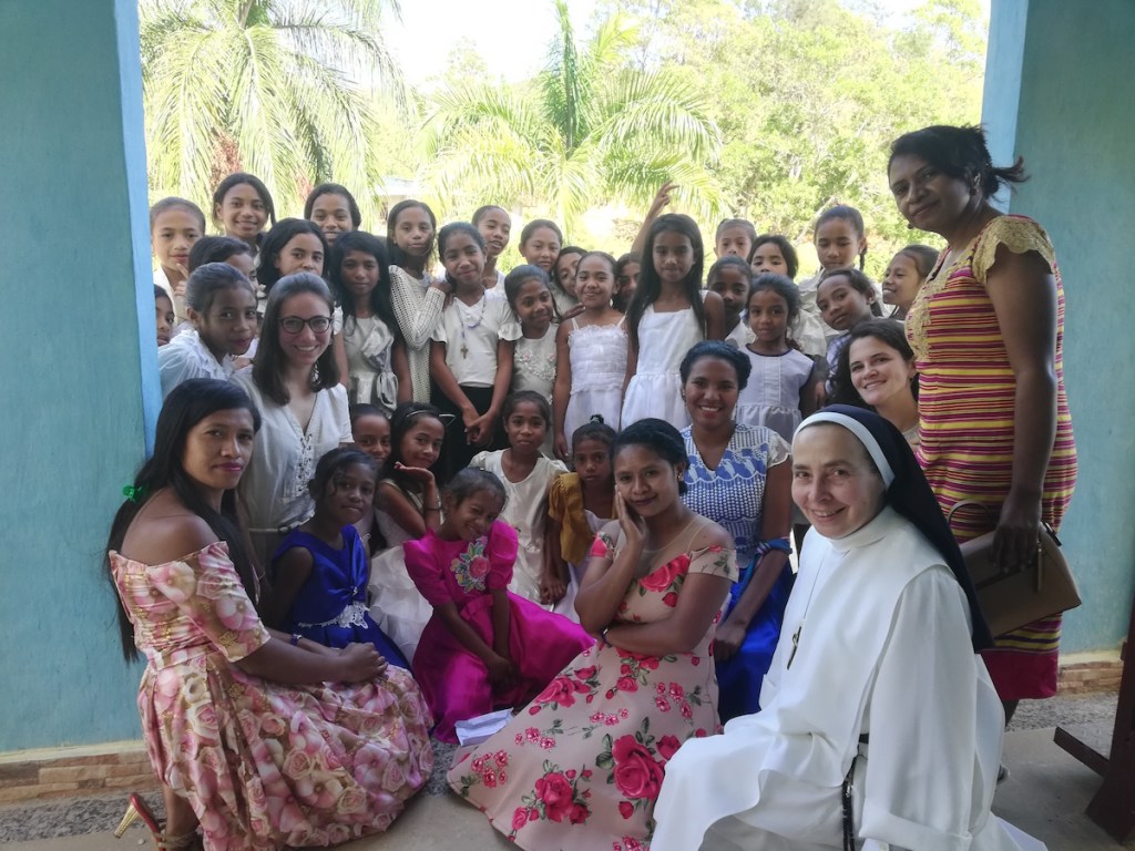 La plus grande difficulté de ma mission ? La langue sans aucun doute. Une des langues officielles du Timor oriental est le Tetun, une langue qui ne ressemble à aucune autre. La communauté de sœurs dans laquelle nous étions était portugaise, la langue parlée était donc le portugais. Seule une sœur, Irma Elisa, notre référente pendant toute la mission, parlait anglais. Ne parlant ni portugais ni Tetun, pendant les premières semaines j’alternais entre anglais-espagnol-portugais-tetun. Je mixais, j’improvisais… Le plus difficile a été de savoir prendre le temps, d’apprendre à me taire, à écouter. Être patiente, sourire. Je me suis rendu compte de la force du sourire lorsqu’il n’y a rien d’autre our communiquer. Face à cette difficulté, les enfants ont été incroyables. Ils mettaient tellement de cœur à essayer de nous comprendre et faisaient tout pour nous aider. Tout s’est débloqué le jour où nous avons décidé de nous concentrer sur le Tetun, pour les enfants, mettant un peu de côté le portugais.