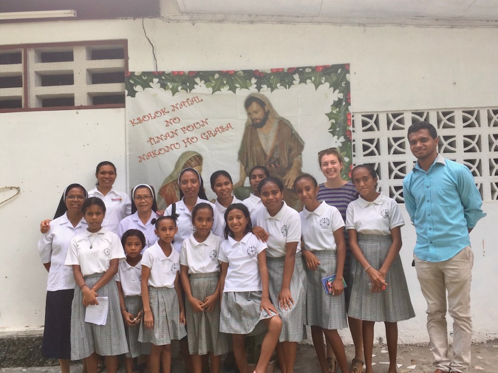 En arrivant au Timor, je suis redevenue comme un enfant : il faut apprendre à parler une langue inconnue, apprendre les nouvelles coutumes, les nouveaux gestes de politesse, apprendre à trouver son chemin… La messe quotidienne était le seul moment où je n’étais pas perdue ! J’ai vraiment redécouvert que Dieu était présent à chaque instant de ma vie et qu’Il était mon roc et ma citadelle pendant ces 6 mois de mission !